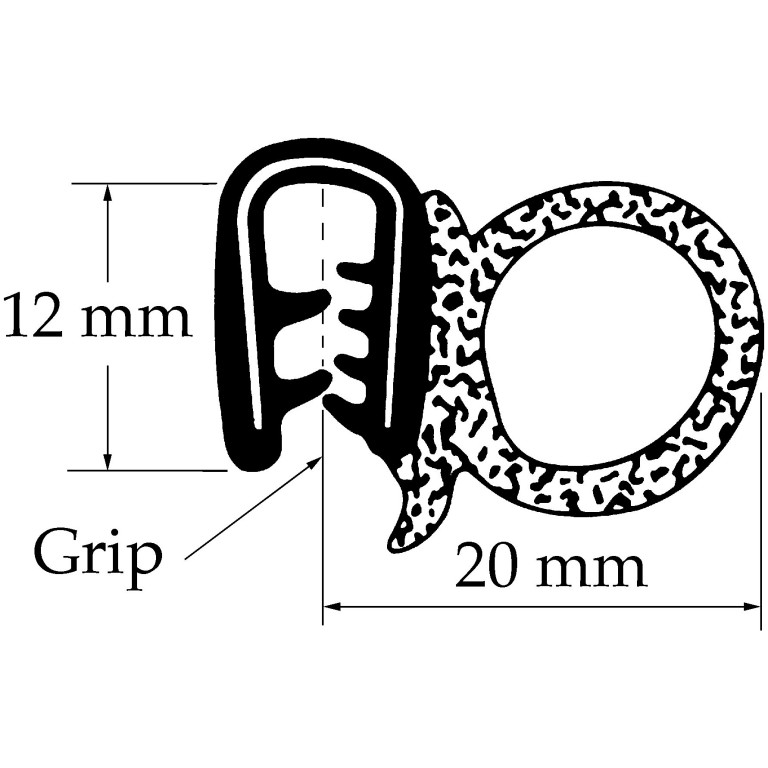 Grip range 1.5 mm to 2.5 mm. Sold by the metre