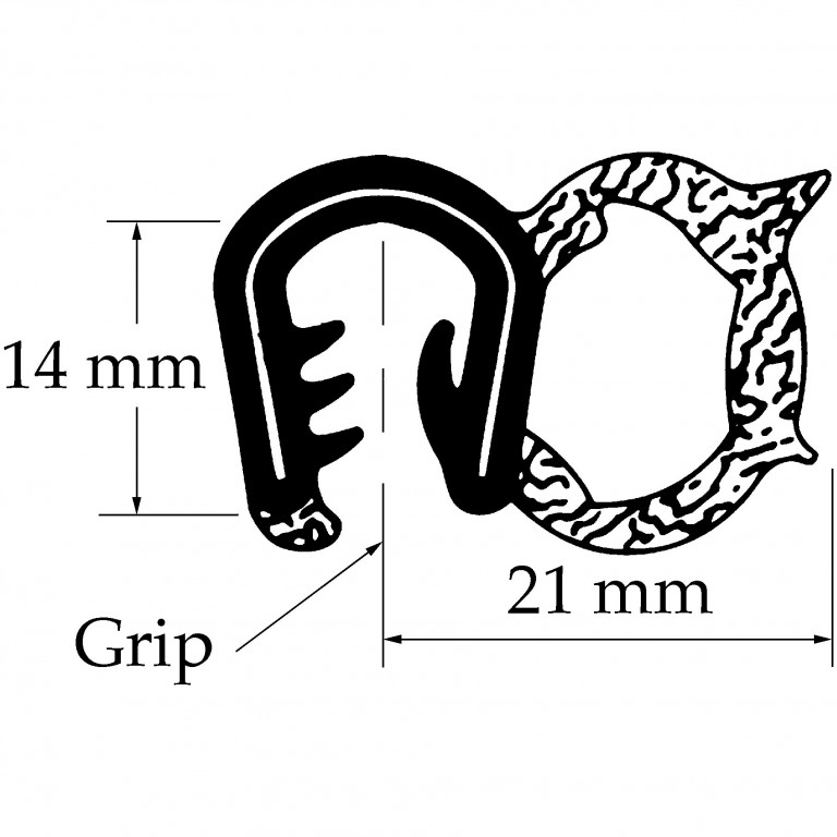 Grip range 3.5 mm to 5 mm. Sold by the metre