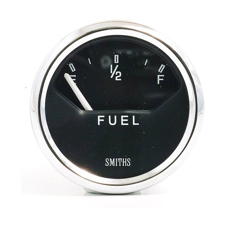 Genuine SMITHS designed instrument, skillfully crafted to the original drawings and specifications for the Cobra, using original tools and dies. 52 mm diameter with white figures on a black quadrant dial reading 0 1/2 F. With 12 volt illumination. Corresponding tank senders are also available