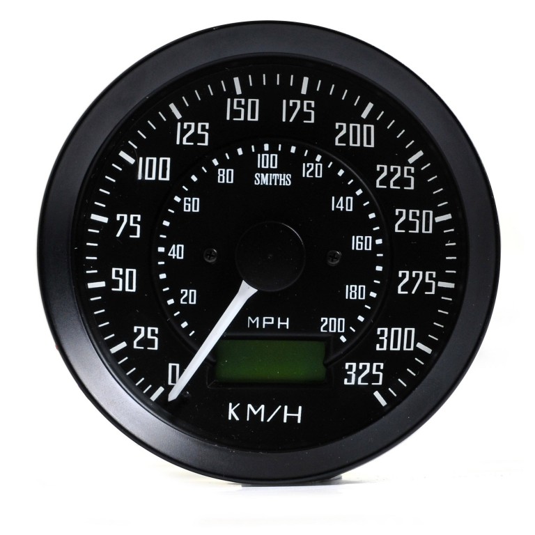 Genuine SMITHS designed instrument, skillfully crafted to the original drawings and specifications for the GT40, using original tools and dies. 100mm diameter with white figures on a black dial. Reads from 0 to 325 kph and 0 to 200 mph. 12 volt (NEGATIVE EARTH ONLY) electronic operation and has illumination. Speed sensors and screened cable are available to purchase separately.