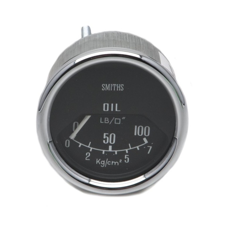 Genuine SMITHS designed instrument, skillfully crafted to the original drawings and specifications for the Mini, using original tools and dies. 52 mm diameter with white figures on a black dial reading from 0 to 100 lbs per sq in quadrant scale. Mechanical operation, which means you will need a pressure pipe to connect to your engine if you do not have one already, and maybe an adaptor or T piece if this is a new installation. Supplied with bulb, bulb holder and mounting clamp.