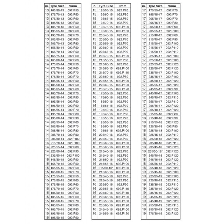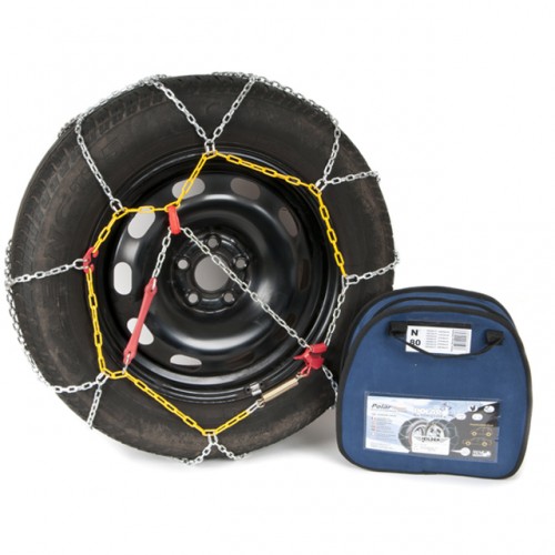A pair of quick fitting diamond pattern chains to give you traction on snow, manufactured using mild steel with spring assisted tensioning system. 9mm projection for limited clearance applications. Includes gloves, one pair per pack, repair links and fitting instructions. Available for a large range of wheel/tyre sizes, each size fits particular wheel/tyre sizes, select size from chart below. Enter this number in the search box at top right to obtain full details of that size
