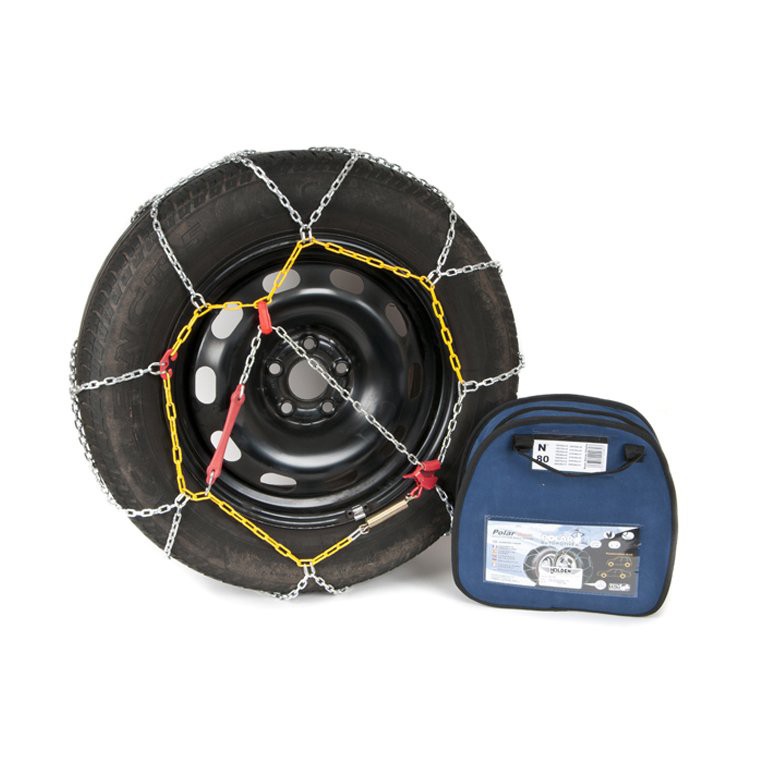 A pair of quick fitting diamond pattern chains to give you traction on snow, manufactured using mild steel with spring assisted tensioning system. 9mm projection for limited clearance applications. Includes gloves, one pair per pack, repair links and fitting instructions. Available for a large range of wheel/tyre sizes, each size fits particular wheel/tyre sizes, select size from chart below. Enter this number in the search box at top right to obtain full details of that size