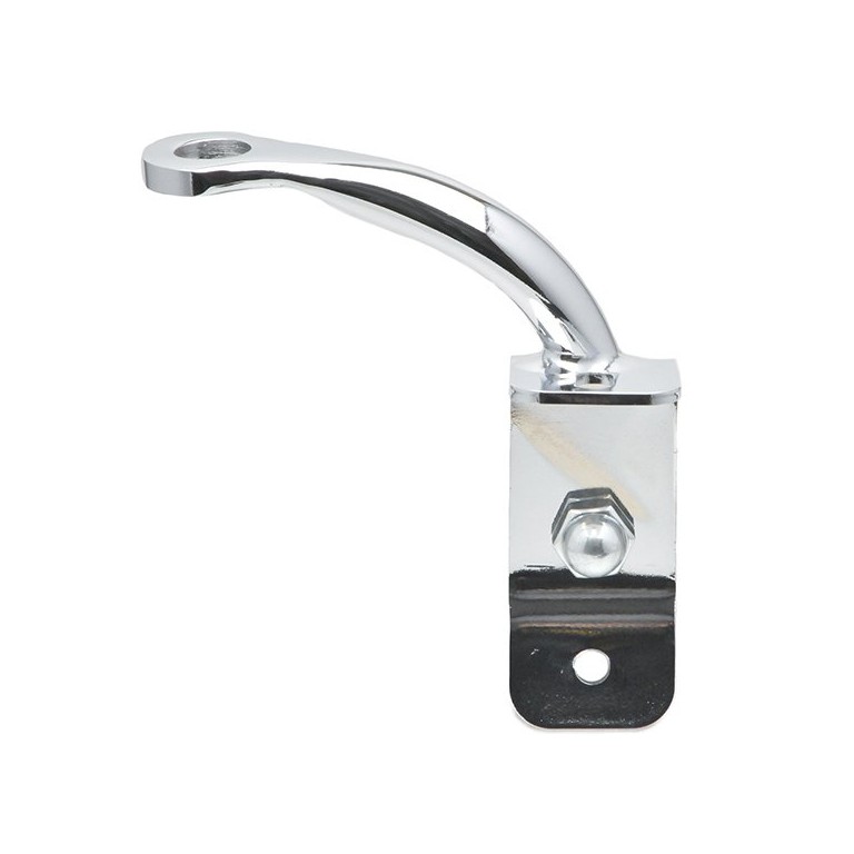 These chrome plated brackets make it easier to mount accessory lamps such as SLR576 and SFT576. Bracket part fits behind the over rider or bumper with the lamp just outboard. This one is on the left hand side when seen from the front of the car. For the right hand refer to 010.603. They were originally available from the factory as optional equipment when the MGA was new. Mounting bolt not supplied