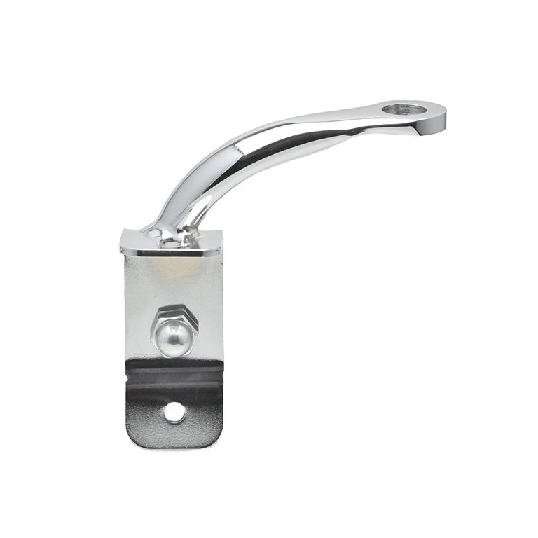 These chrome plated brackets make it easier to mount accessory lamps such as SLR576 and SFT576. Bracket part fits behind the over rider or bumper with the lamp just outboard. This one is on the right hand side when seen from the front of the car. For the left hand refer to 010.602. They were originally available from the factory as optional equipment when the MGA was new. Mounting bolt not supplied