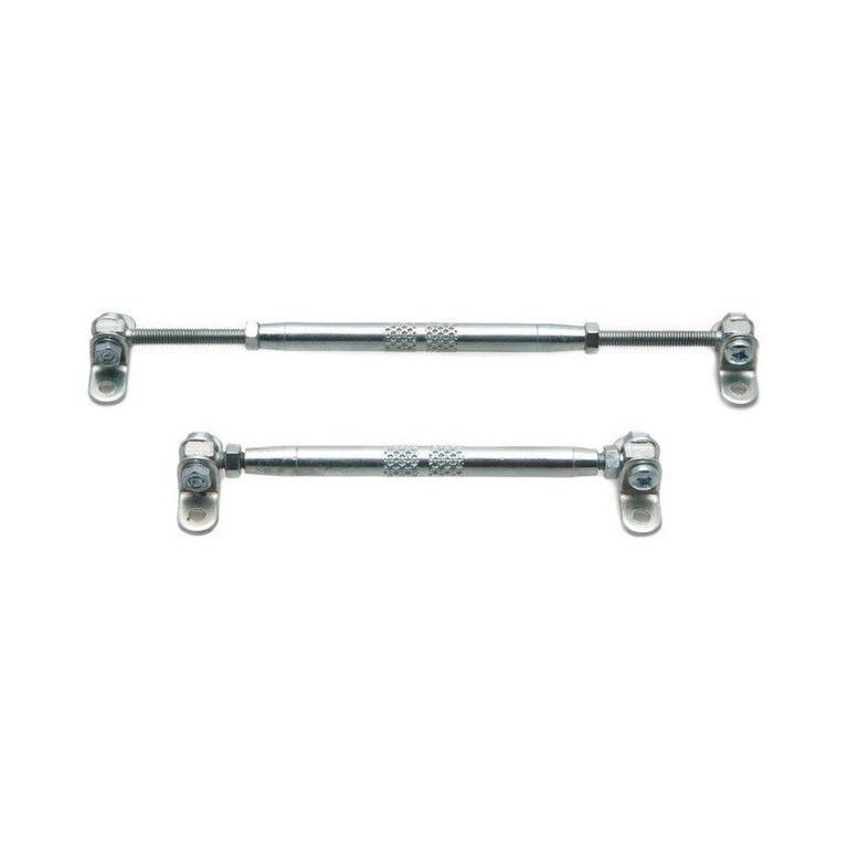 If you have trouble with vibration of your Auxiliary Lamps we offer these Stabiliser Bars. They require two holes in the lamp and two in the car. All metal. Length between centres can be adjusted from 120 to 175 mm. Sold as a pair