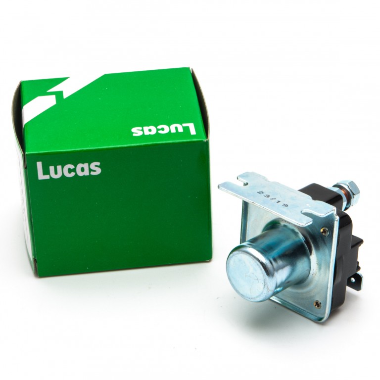 A universal Starter Solenoid allowing for operation of starter motors that do not have their own integral solenoid via either a key switch or panel mounted starter button. There are two main terminals for the battery and starter connections using ring terminals and smaller connections via Lucar type terminals. Lucas SRB325, 76766, BCA4501, 13H163, BMK1727