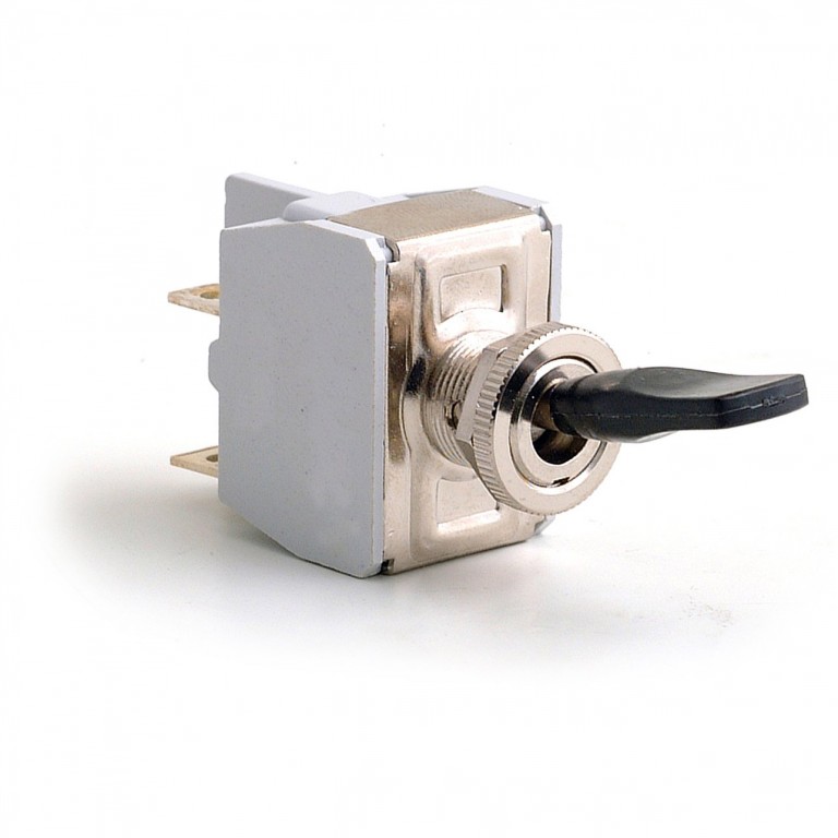 Four terminals, providing Off-on function, suitable for most general applications. Can be used on 6 or 12 volts. Requires hole 12mm diameter, panel thickness between the two nuts supplied up to 4.5mm. On-off Plate available. This a quality switch with a 'Lucas' lever and has the appearance of a Lucas Switch. A range of switches offering different functions is available. Rated at 15 amps on 12 volt systems. This switch can be made to look even more like an original Lucas switch by using the special Bezel or Nut. Use with the special Threaded Washer if replacing original Lucas switches