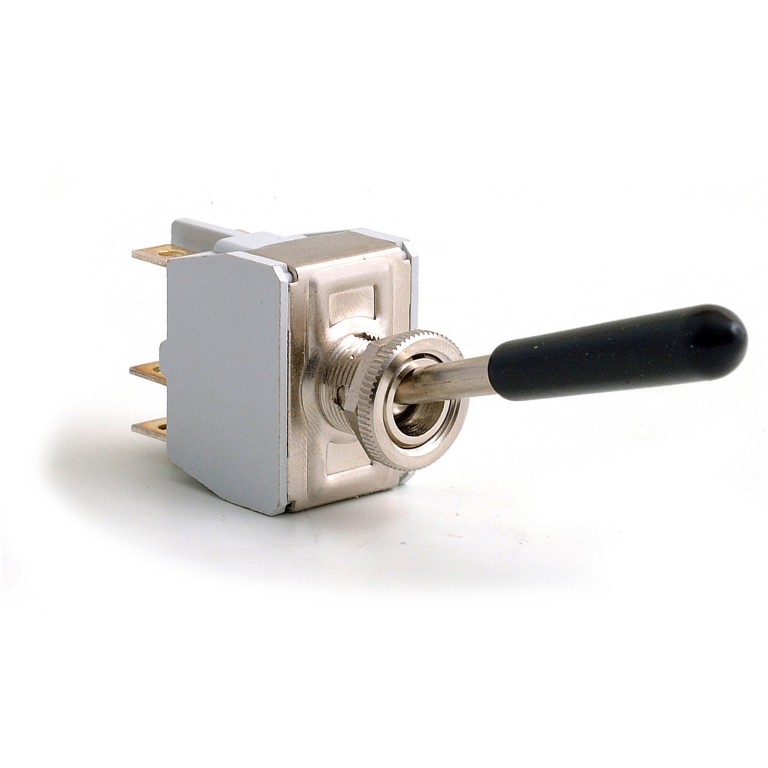 Six terminals, providing On-Off-On function, ideal for use as an indicator switch. Can be used on 6 or 12 volts. Requires hole 12mm diameter, panel thickness between the two nuts supplied up to 4.5mm. This a quality switch with a 50mm long stainless steel lever, is supplied with a rubber boot for the end of the lever. A seal kit is available to make switch damp proof. A range of switches offering different functions is available. Rated at 15 amps on 12 volt systems. Can be used to fit in place of an original Lucas switch by using our Bezel or Nut in conjunction with the Threaded Washer. Bezel or Nut can be used separately for new fitments