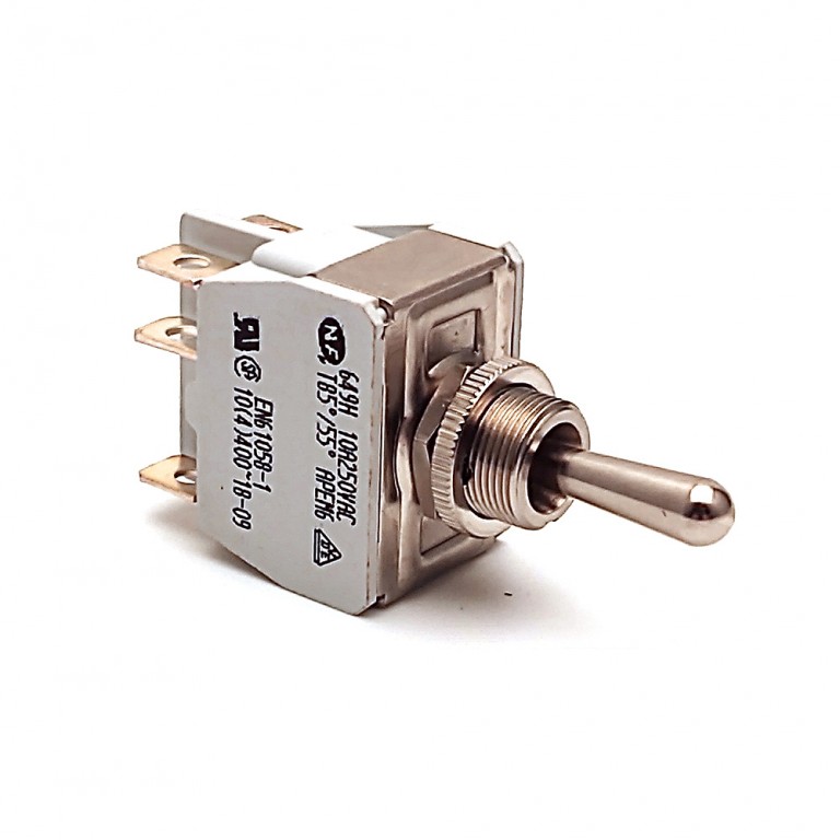 Six terminals, providing On-Off-On function, ideal for use as an indicator switch. Can be used on 6 or 12 volts. Requires hole 12mm diameter, panel thickness between the two nuts supplied up to 4.5mm. This a quality switch with stainless steel lever,. A seal kit is available to make switch damp proof. A range of switches offering different functions is available. Rated at 15 amps on 12 volt systems. Can be used to fit in place of an original Lucas switch by using our Bezel or Nut in conjunction with the Threaded Washer. Bezel or Nut can be used separately for new fitments