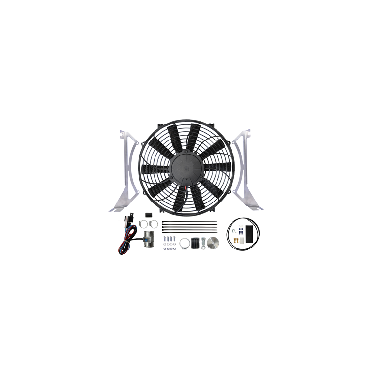 Kit Contains: 14" Sucking fan Laser cut stainless steel fan mounting brackets Front pulley spacer kit 35mm Revotec positive electronic fan controller Hose joiner kit Earth wire kit Bolts and fittings
