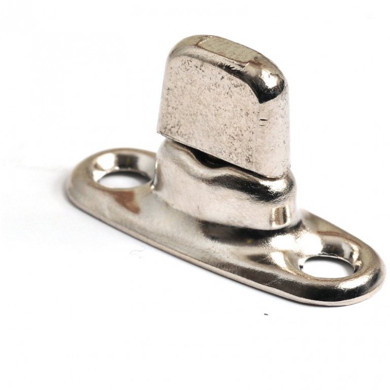 Suitable for one Eyelet (one layer of material). Secure to a metal panel or to wood using two screws or self taps. Turn the top by hand to secure the fabric. 17 mm tall