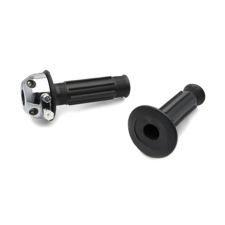One Twist Grip and one plain. For 7/8 (22mm) Handlebars. H as raised ridges on twist grips