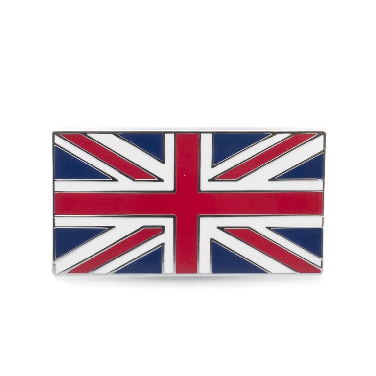 An enamelled adhesive Union Jack badge for your car. Enamelled in three colours - red/white/blue. 38mm x 21mm