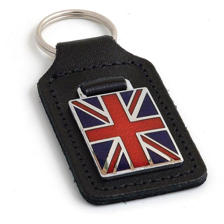 Key fob with an enamelled Union Jack mounted on a quality leather fob. A nice present, can even be used for non car keys