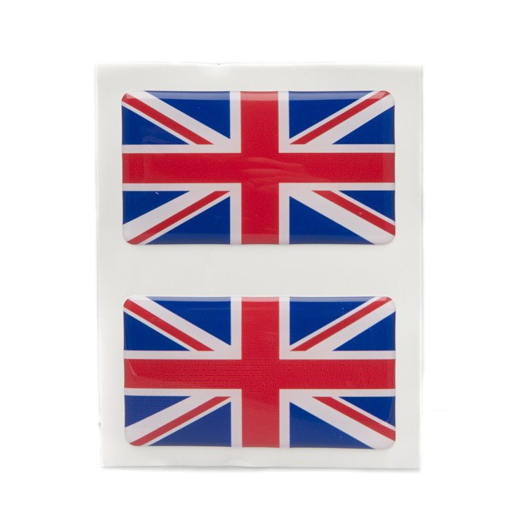 A pair of Union Jack Stickers for your car. Plastic. 70mm x 40mm