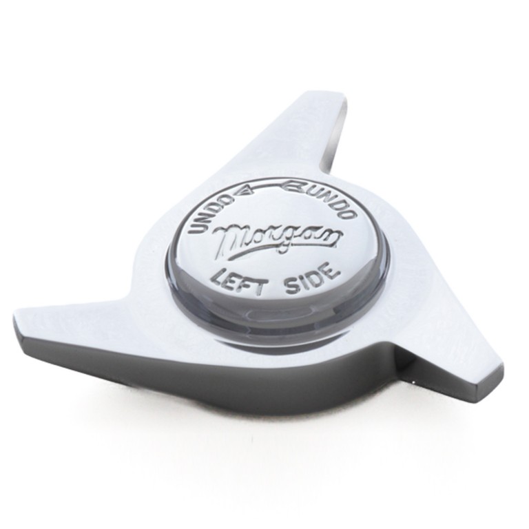 Chromed Brass wheel spinner. Fits Morgan 4/4 1600 & 1800 1968-85; Plus 4 1985; Plus 4 & 4/4 Mk I/ II / III/ IV & V 1950-68; Plus 8 1968 onwards; Three Wheeler.