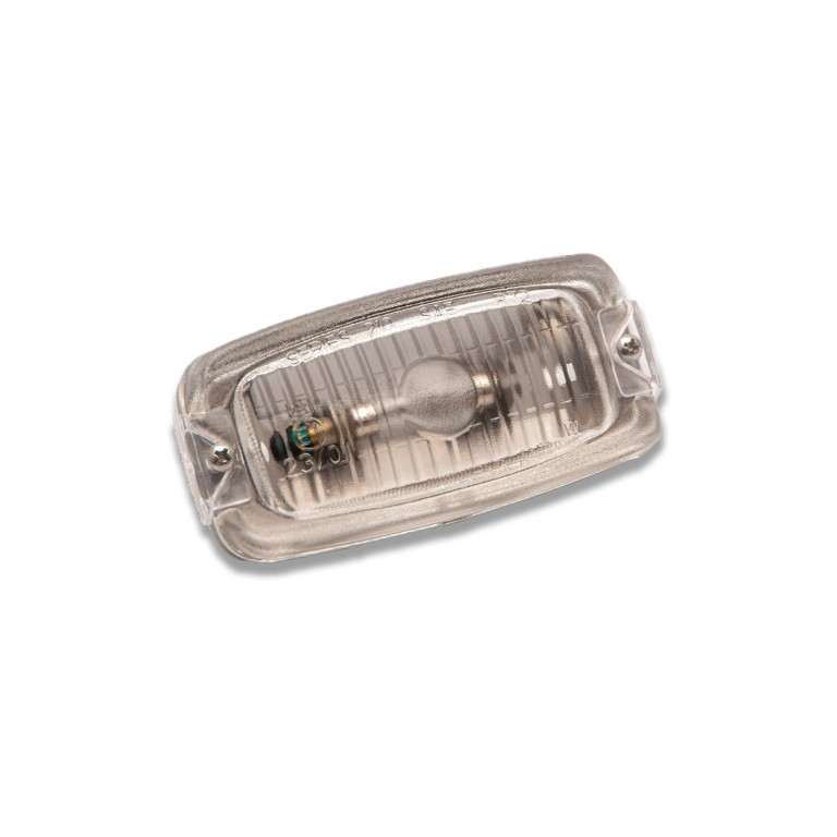 Good reproduction of the Wipac flush-mounted reverse lamps. These were fitted to Aston Martin DBS used as under bonnet lamps and reverse lamps. Wipac ref. S3614 and S210. Stainless steel body and glass lens 110 x 54mm