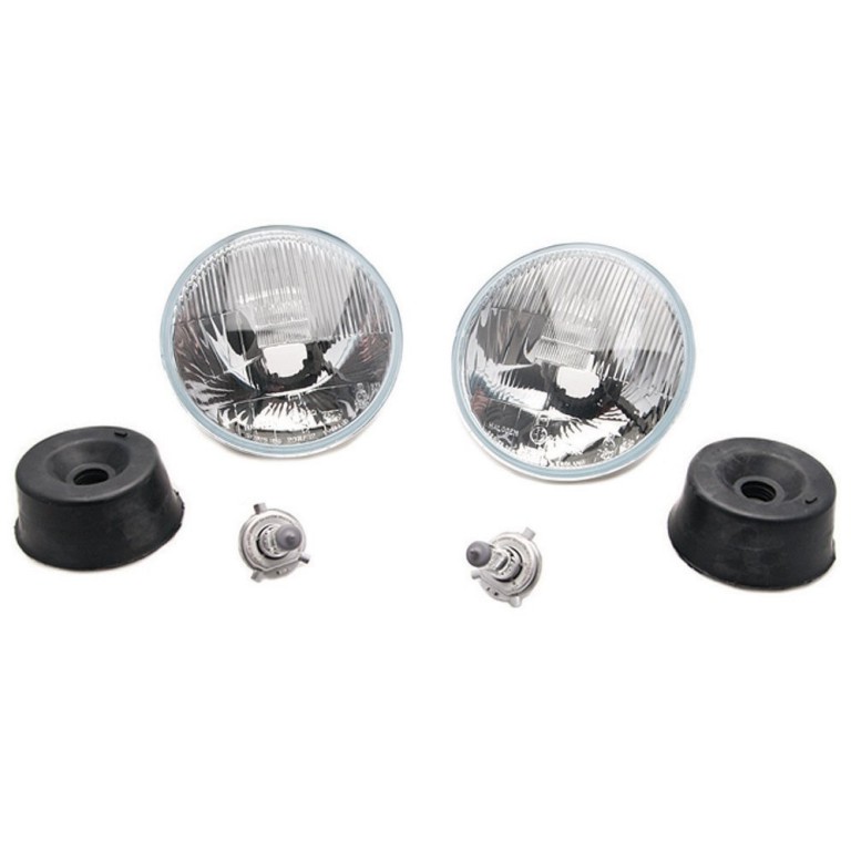 The ideal way of buying Halogen replacements for all cars using round 12 volt 7 inch Headlamps. In addition to the two light units, which are ''E'' marked, there is everything you need to fit Halogen units to your car, including 60w/55w Halogen bulbs, and rubber sealing boots This part number is for Left Hand Drive without side light. The lamp unit is also available singularly, albeit without bulbs, if required.