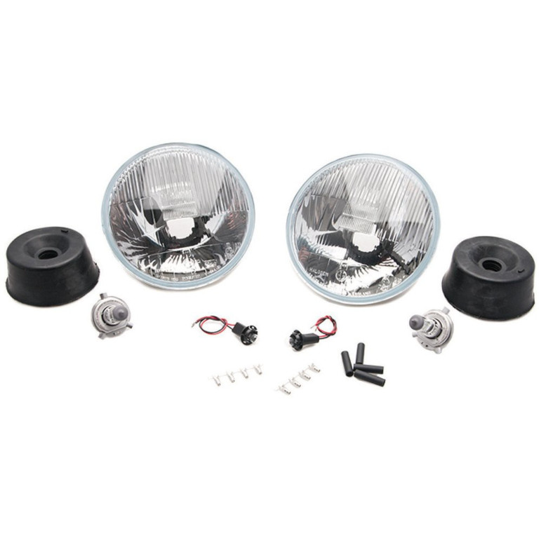 The ideal way of buying Halogen replacements for all cars using around 12 volts 7 in Headlamps. In addition to the two light units, which are 'E' marked, there is everything you need to fit Halogen units to your car, including 60w/55w Halogen bulbs, the correct side light bulb holders, and bulbs.