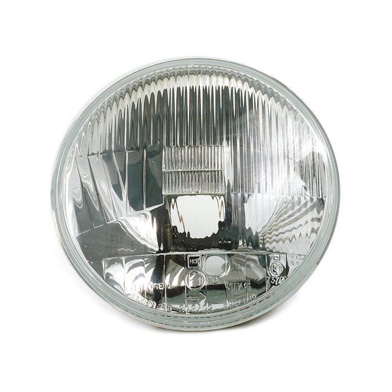 Wipac lamp unit with slightly domed lens and metal reflector, E Marked. Right Hand Drive with sidelight facility. For use with H4 Halogen bulbs and harness which are available to order separately. A pilot bulb holder is available separately 554710